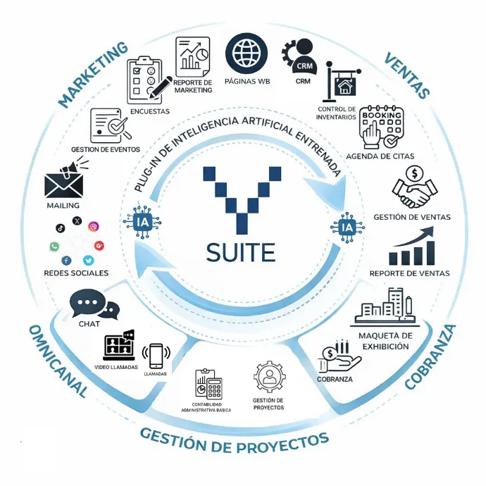 Volumento Suite es una plataforma tecnológica integral inmobiliaria que conecta exhibición, operación comercial y seguimiento de ventas en un solo flujo continuo, diseñada específicamente para el sector inmobiliario.